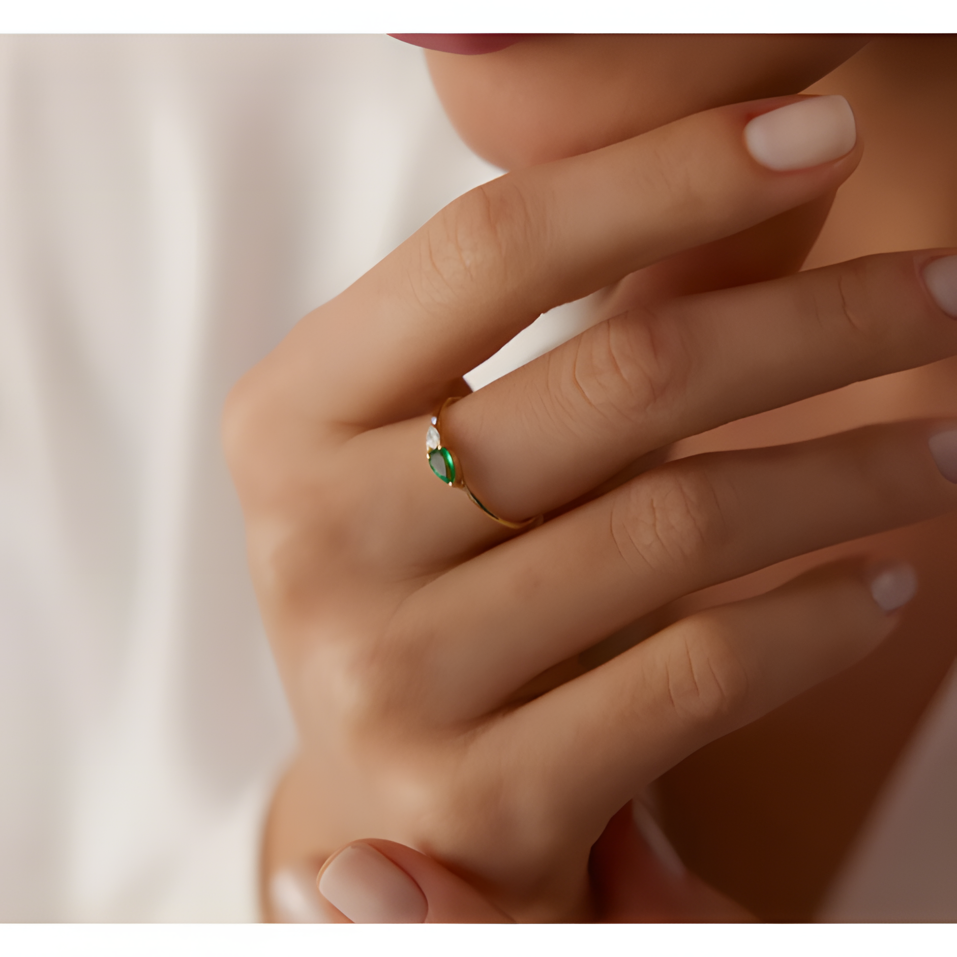 Emerald Teardrop Bejeweled Golden RIng